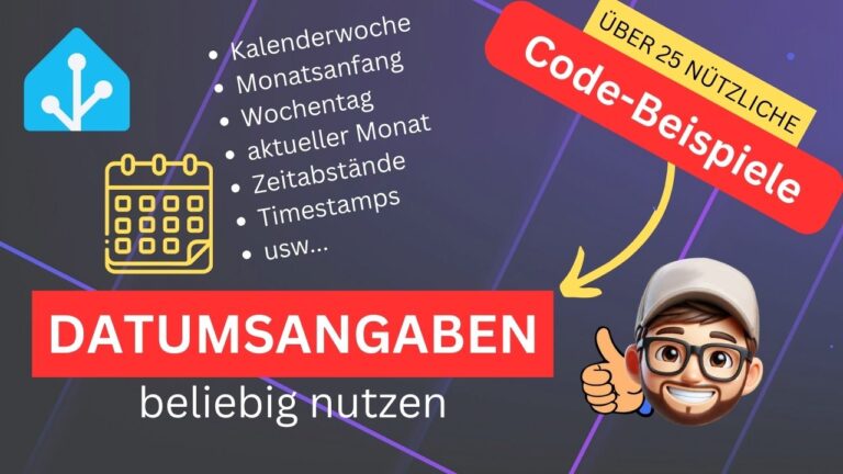 Mit ein klein wenig Template-Code kann man in Home Assistant Datumsangaben nahezu beliebig nutzen, manipulieren oder dynamisch erstellen. Hierdurch kannst du deine Skripte und Automationen noch smarter machen, da du somit die Datumsangaben dynamisch nutzen kannst. Ich zeige dir zahlreiche Beispiele, wie du Datumsangaben sofort für dein Smart Home nutzen kannst.